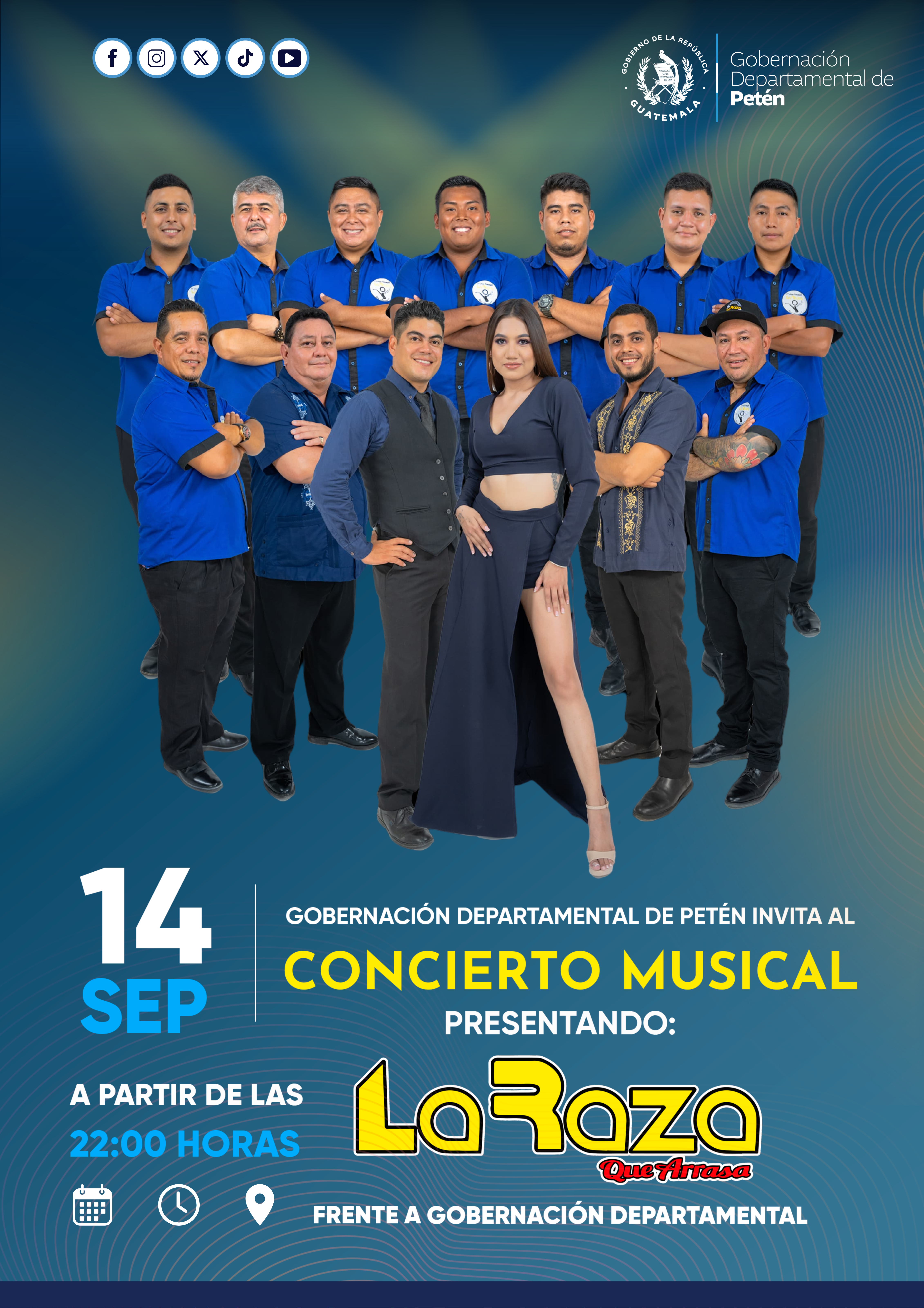 Ven con tus amigos y familia a disfrutar de una noche llena de música y diversión, organizada por la Gobernación Departamental de Petén. ¡No faltes! ![]()