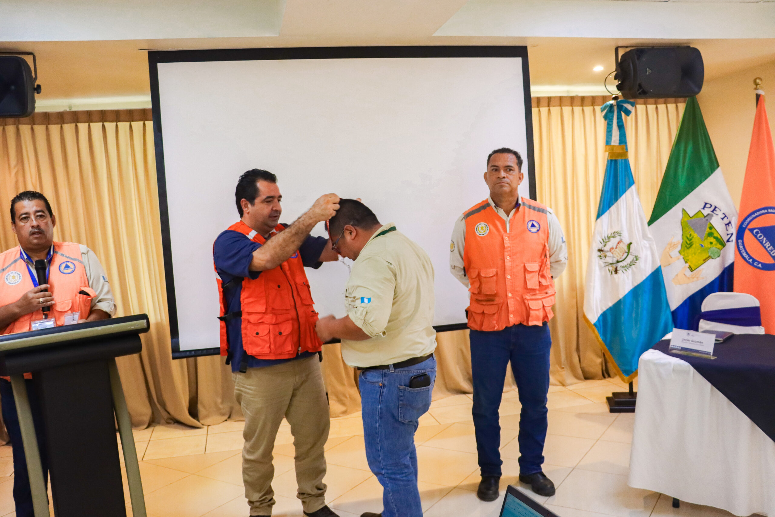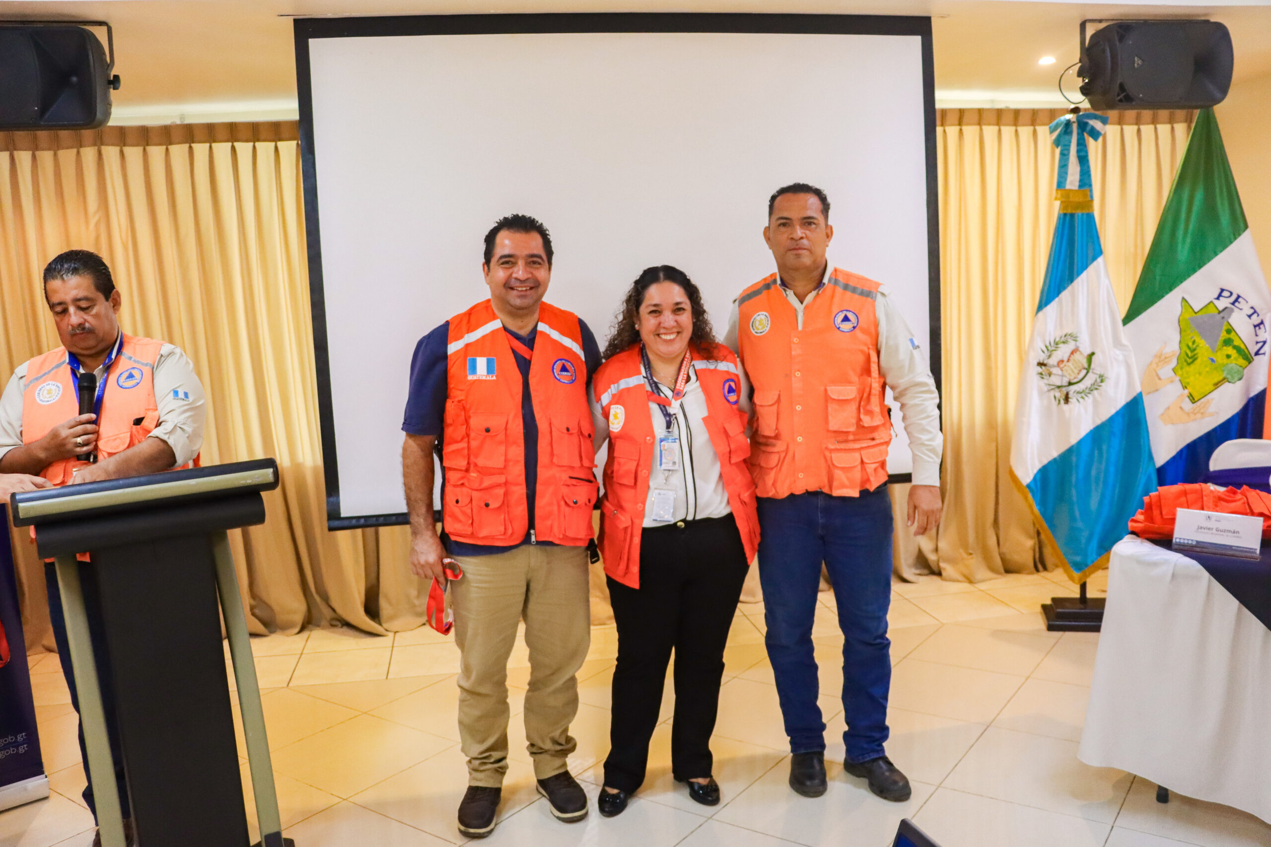 La ceremonia también contó con la presencia de Rony Valiente, Coordinador de la CODRED y delegados de diversas instituciones clave que desempeñan un papel fundamental en la gestión y respuesta a emergencias. Entre las entidades representadas se encontraban: CONRED, SOSEP, SEPREM, SESAN, MIDES, PDH, Bomberos Voluntarios, la Policía Nacional Civil (PNC), DDRISS, INAP, MARN, IGSS, SEGEPLAN, COREDUR, INFON y la Procuraduría General de la Nación (PGN).