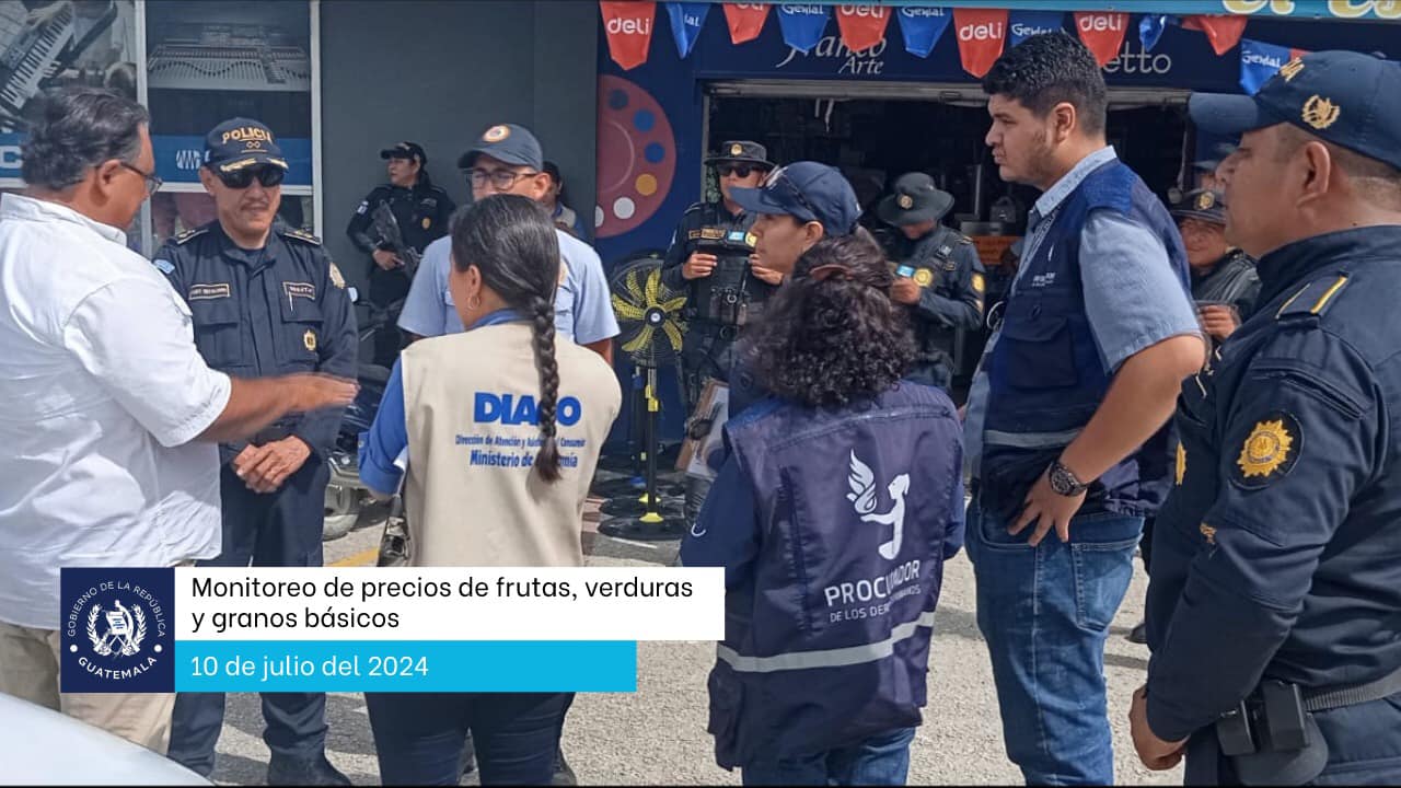 El miércoles 10 de julio del 2024, una comisión conformada por representantes de la Dirección de Atención y Asistencia al Consumidor (DIACO), de la Procuraduría de los Derechos Humanos (PDH), de la Policía Nacional Civil (PNC) y de la Gobernación Departamental de Petén, realizan un monitoreo de los precios de las frutas, verduras y granos básicos, en los mercados del área central. Con el objetivo de asegurar que los precios sean justos para la población petenera.